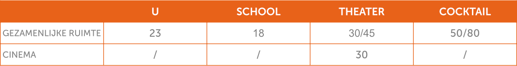 Hieronder vindt u verschillende mogelijke indelingen en hun capaciteit.